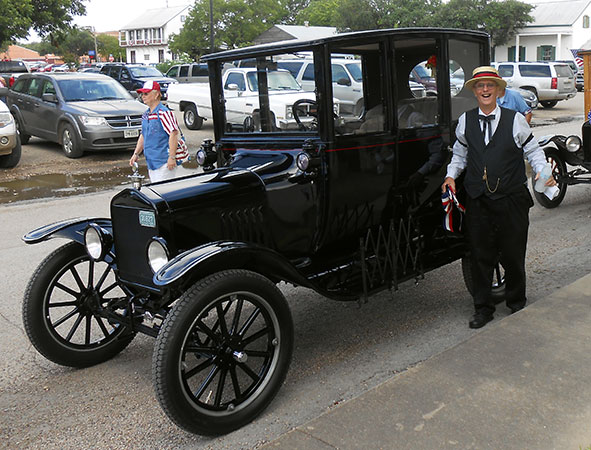 George Wilson and 1921 Ford Model T center door sedan during the 2015 Castroville 4th of July parade
