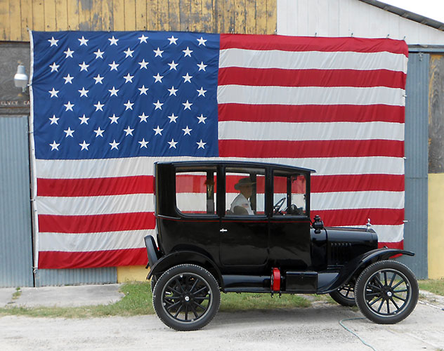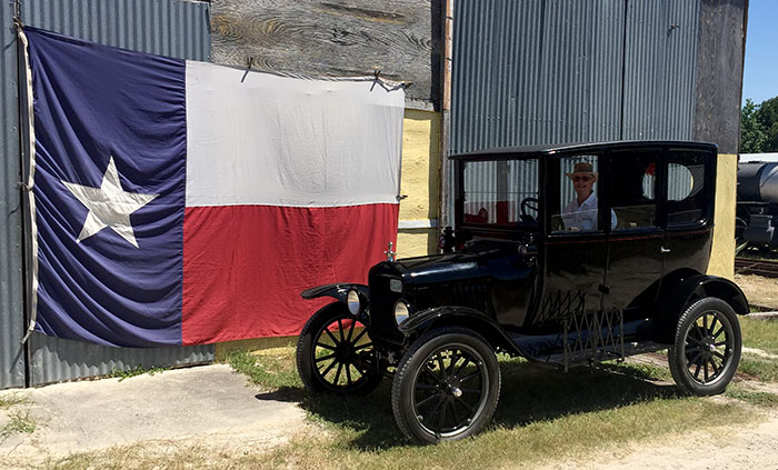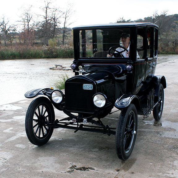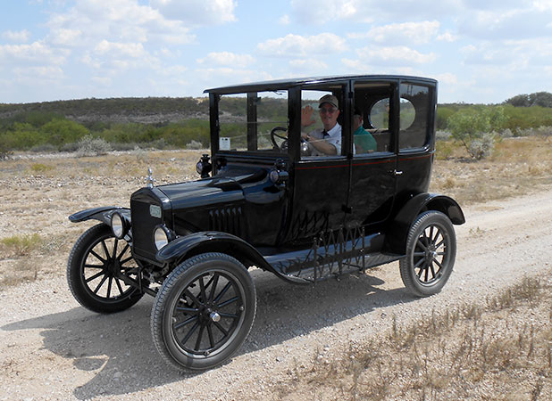 George Wilson and 1921 Ford Model T center door sedan during the 2015 Texas T Party based in Uvalde