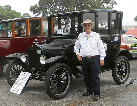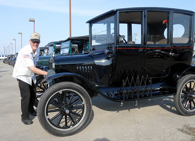 George Wilson and 1921 Ford Model T center door sedan at the 2014 Canyon Lake cruise