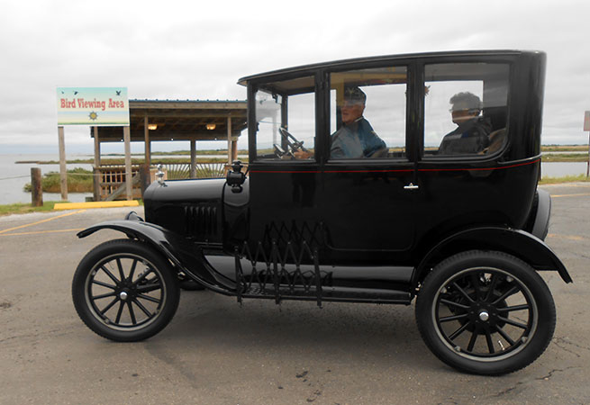 George Wilson and 1921 Ford Model T center door sedan during a Rockport based coastal tour, November 2015