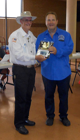 George Wilson winning a prize for his 1921 Ford Model T center door sedan during the 2014 Shriner Car Show