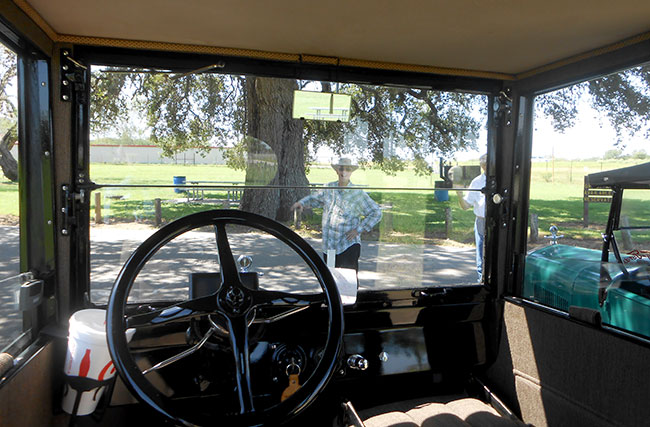 George Wilson as seen from the interior of his 1921 Ford Model T center door sedan during the Braunig Lake Tour, September 2016