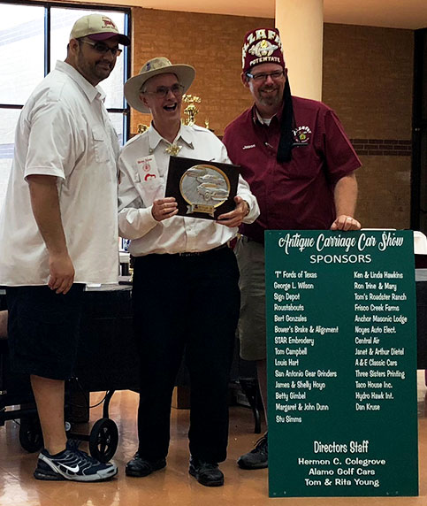 George Wilson winning a prize for his 1921 Ford Model T center door at the 2018 Shriner car show