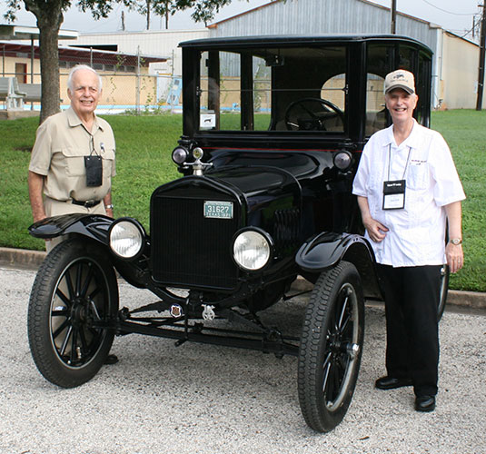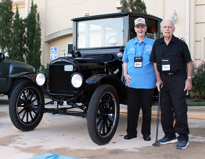 George Wilson - right - and Tom campbell, with George's 1921 Ford Model T center door during the 2018 Texas T party