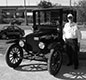 George Wilson and his 1921 Ford Model T Center Door at the theatrical premiere of the PBS documentary, "El Camino Olive Trails."