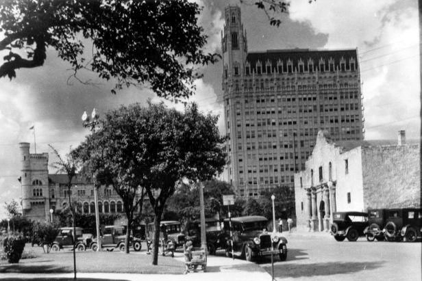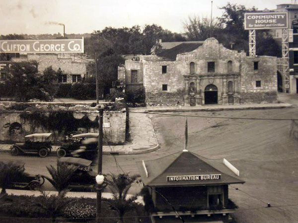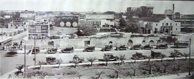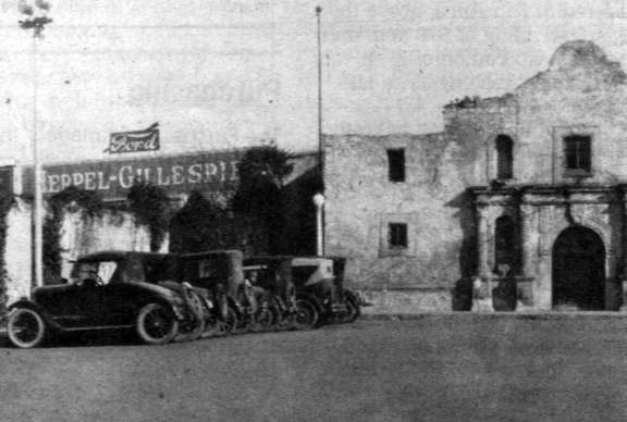 Alamo Plaza, San Antonio, in 1915. Note Ford dealership sign above the Alamo