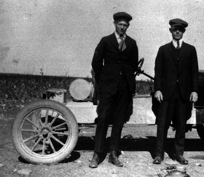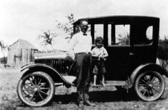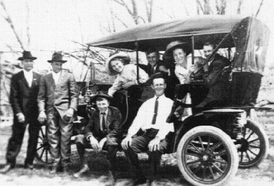 Ford Model T in Comfort. Note window folded in half even though it's winter. Maybe this is why this is why they have no hats, rare for this era.