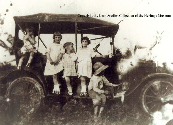 Ford Model T, five children, one dog, one goat. Seguin, Texas