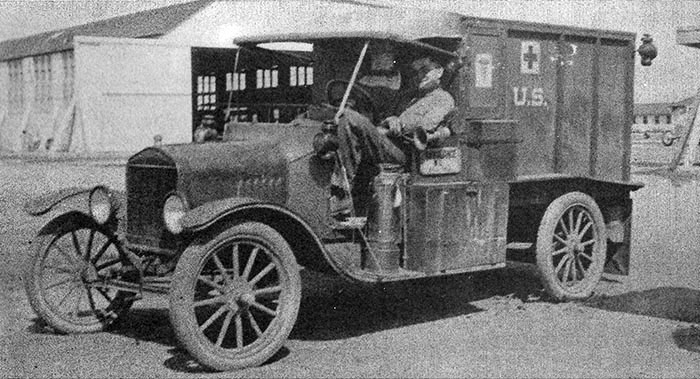 Military Ford Model T ambulance at Hnager 9 in the 1920s, Brooks Field. San Antonio