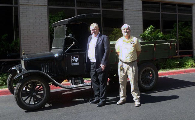 Hugh Hemphill with Red McCombs and the 1924 Ford Model T C Cab 1 ton truck belonging to the Texas Transportation Museum