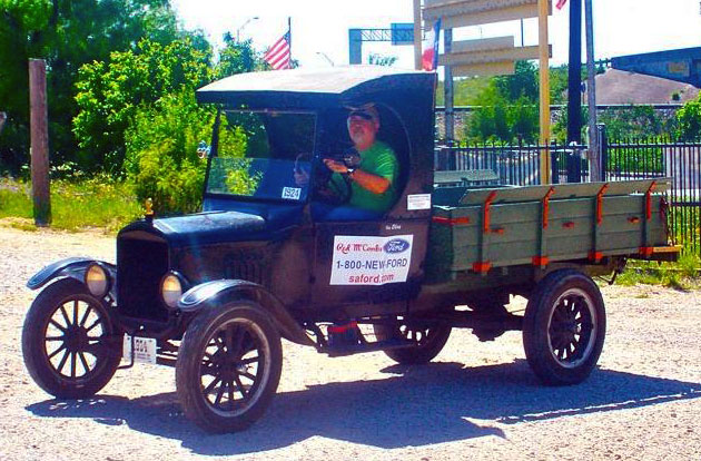 Hugh Hemphill on Alamo Plaza in the 1924 Ford Model T C cab belonging to the Texas Transportation Museum during the 2013 San Antonio Ford Model T Show