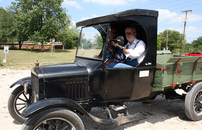 Texas Transportation Museum visitors in this 1925 Ford Model T, November 2017