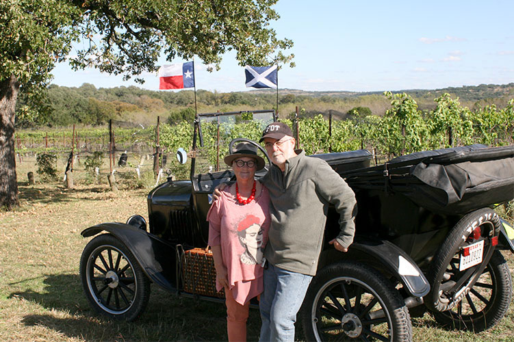 Hugh Hemphill and Therese Fleming with their 1925 Ford Model T during the 2018 wine tour