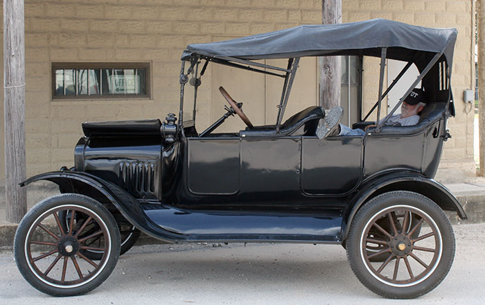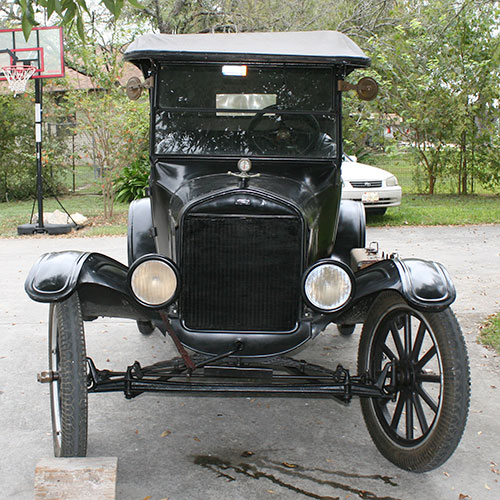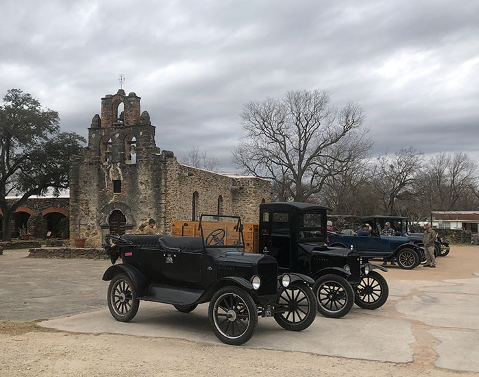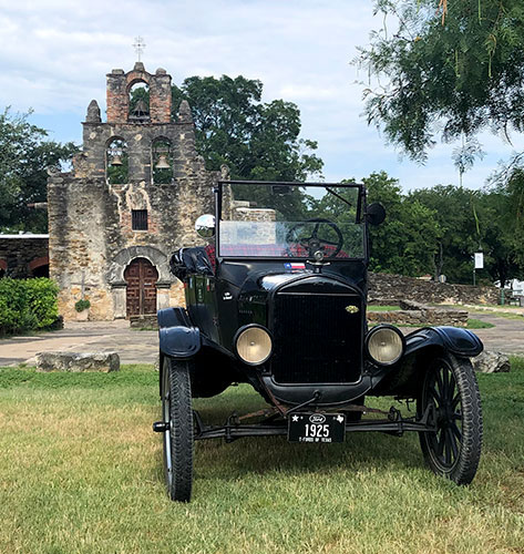 Hugh Hemphill's 1925 Ford Model T at Mission Espada in San Antonio, summer 2019
