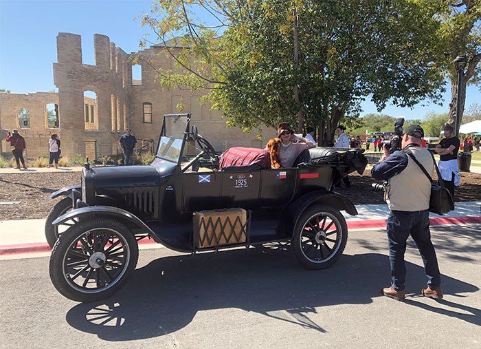 Hugh Hemphill giving rides to visitors in the 1924 Ford Model TT belonging to the Texas Transportation Museum during the 2018 San Antonio Ford Model T Show