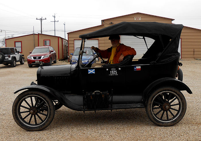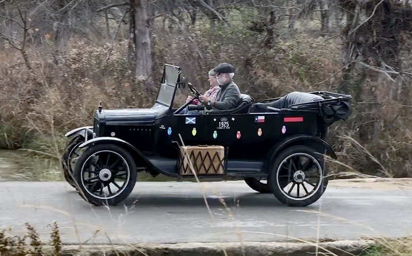 Hugh Hemphill in his 1925 Ford Model T during the Hill Country tour, February 2021