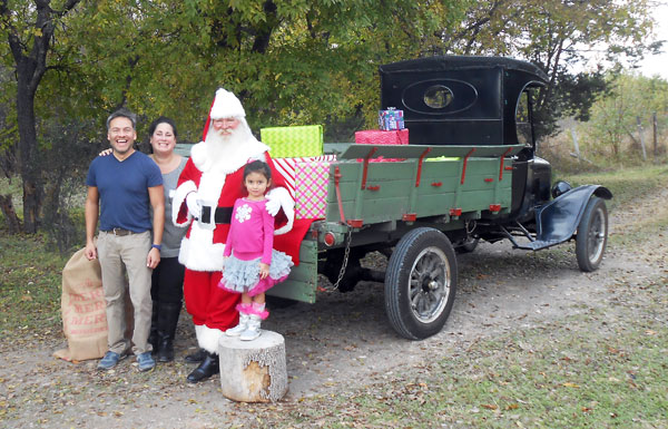 Hugh Hemphill, TFOT Vice-president, with the 1924 Ford Model T C Cab 1 ton truck belonging to the Texas Transportation Museum at the San Antonio Christmas tree on Alamo Plaza, January 1, 2012