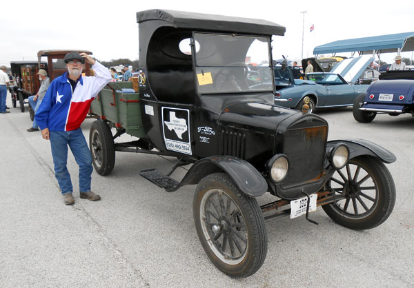 Hugh Hemphill, TFOT Vice-president, with the 1924 Ford Model T C Cab 1 ton truck belonging to the Texas Transportation Museum during the Ford Model T Show sponsored by the Red McCombs Automotive Group