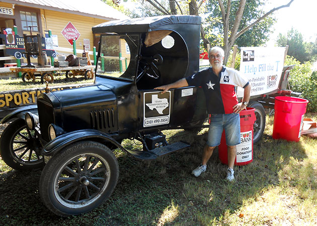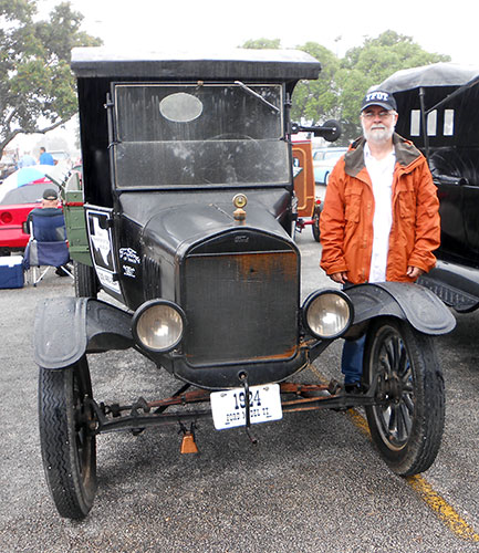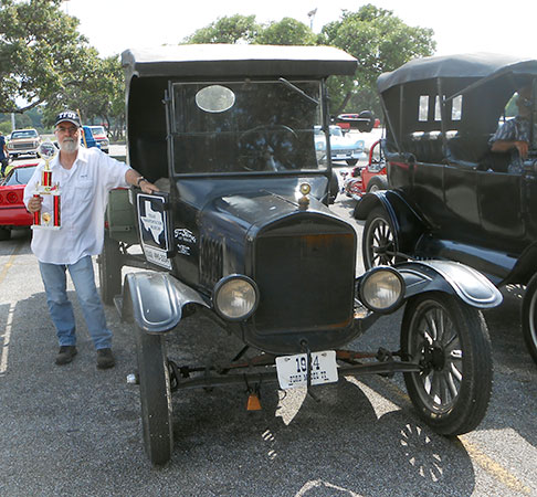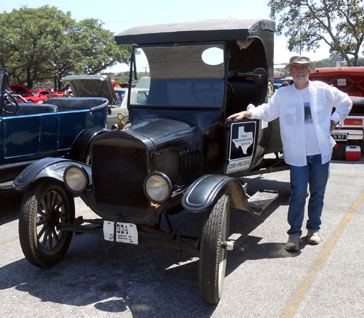 Hugh Hemphill with the 1924 Ford Model TT truck belonging to the Texas Transportation Museum at the 2014 Shriner Car Show