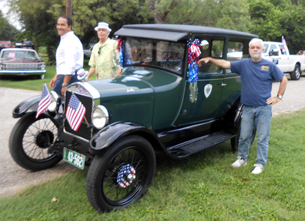 Hugh Hemphill with Homer Hollaand's 1926 Ford Model T Tudor at the 2015 Castroville 4th of July parade