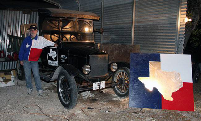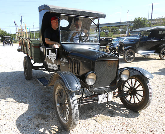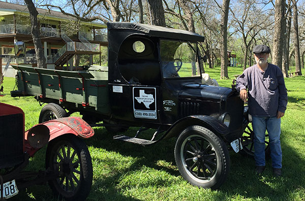 Hugh Hemphill with the 1924 Ford Model TT truck belonging to the Texas Transportation Museum during the 2015 San Antonio Ford Model T Show