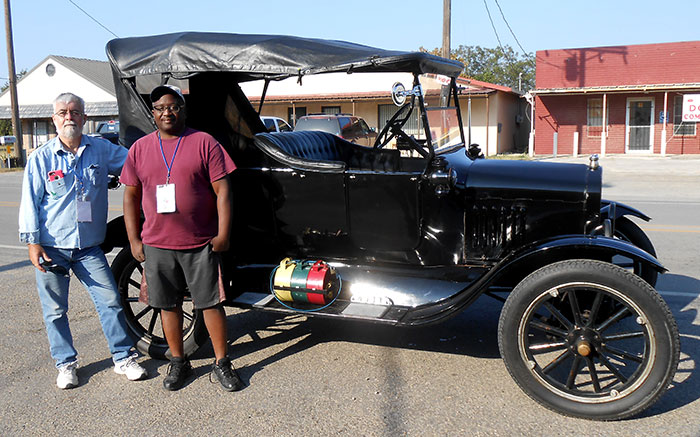 Hugh Hemphill with Dave Barret and his Ford Model T during the 2017 Texas T Party