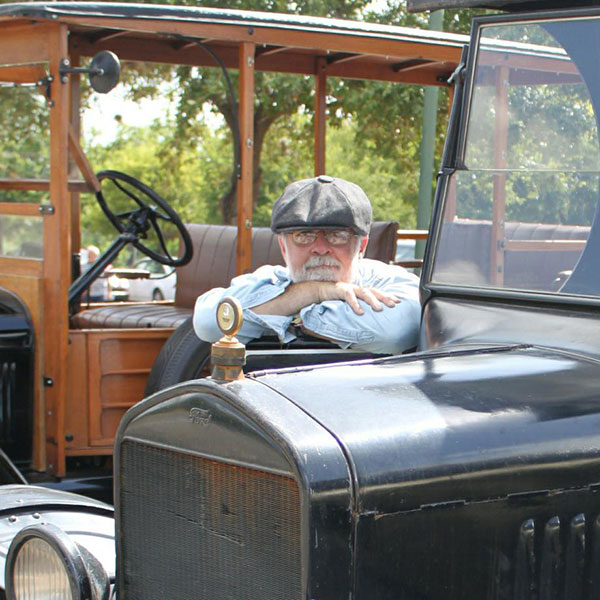 Hugh Hemphill looks after a 1924 C cab TT on behalf of the Texas Transportation Museum in San Antonio, which also hosts the annual "San Antonio Ford Model T Show. He became involved with the club following a chance meeting with former San Antonio T club president Daniel Bratcher in 2007. Hugh is also the author of two books about local transportation history, "The Railroads of San Antonio and South Central Texas," published in 2006 and "San Antonio On Wheels," published in 2009. When he mentioned that the museum owned a C Cab 1 ton Model T truck, Daniel was quick to ask to be able to see it. His verdict was that even though it had not been started in over 25 years, getting it running probably would be relatively simple. And indeed it was. Daniel and fellow T club member Mike Mackechney were able to get the engine running within two hours. It was during subsequent work that the idea of holding a Model T show at the grounds of the museum came up. This was swiftly organized, sixteen Model Ts were present. Since then the annual celebration of Model Ts became a regular event. He acquired a 1925 Touring car in November 2017.