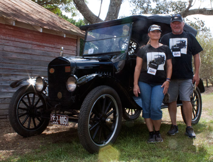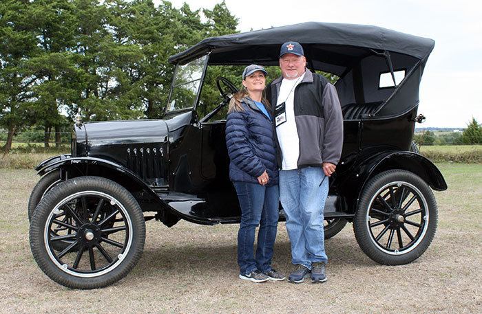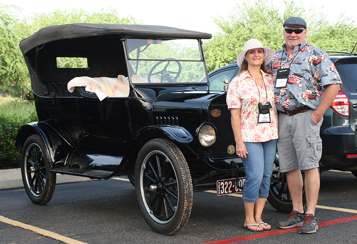 John Olfers and Joni Smith with their 1925 Ford Model T touring car during the 2019 Texas T Party