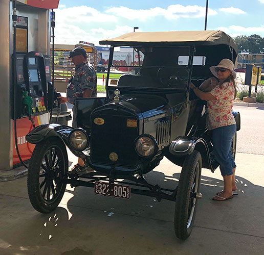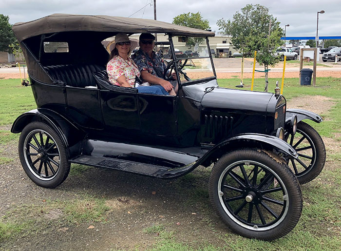 John Olfers and Joni Smith in his newly acquired 1925 Ford Model T touring car during the 2018 Texas T Party