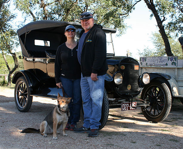 John Olfers and Joni Smith with his newly acquired 1925 Ford Model T touring car during the 2018 Texas T Party