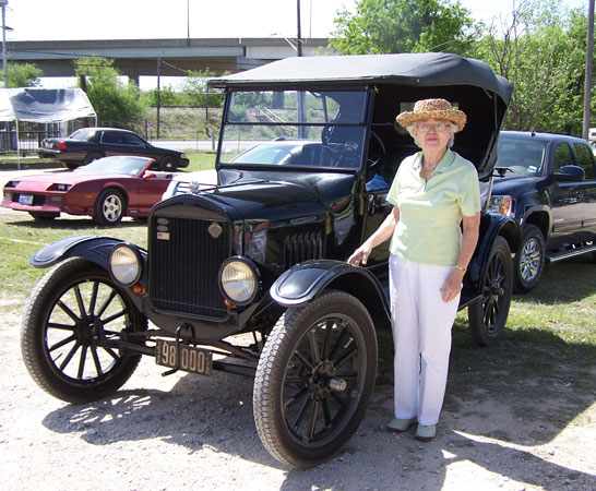 June Prade and her 1924 Ford Model T touring car at the San Antonio Ford Model T Show at the Texas Transportation Museum