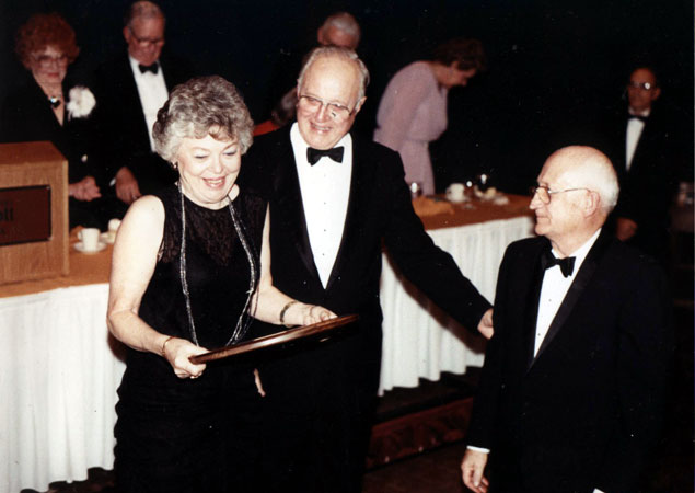 June and Earl acept an award from Veteran Motor Car Club of America president John Brower (center) at the VMCCA national meet in 1983