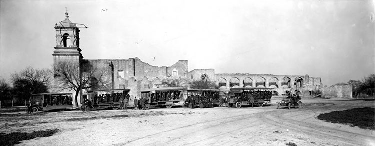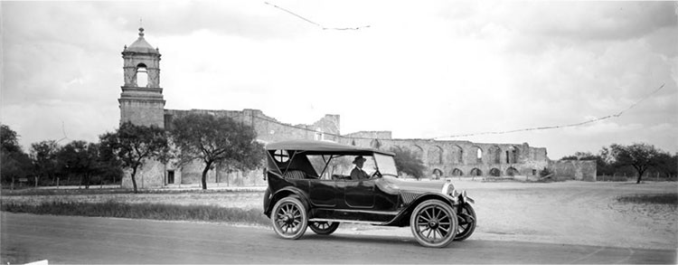 By the early 1900s, San Antonio's four historic missions, Concepcion, San Jose, San Juan and Espada, had long been abandoned. The buildings were in ruins. Roofs and supporting walls had collapsed, their construction materials purloined by anyone and everyone. Into this scene of neglect came early San Antonio motorists. These early leisure travelers, mostly comprised of San Antonio's more wealthy citizens, with the freedom of movement bestowed by the automobile, were appalled by what they found. They decided to act to save what was left of the sites. They button holed as many San Antonio movers and shakers, and brought them out to see the locations in their own vehicles at every opportunity. Their plan worked. Efforts were started to save what was left and restore, with historically accurate construction techniques using, often, the original materials that were lying in heaps all around, leading to the rebirth of the missions as culturally significant sites that continue to gain wider and wider recognition.