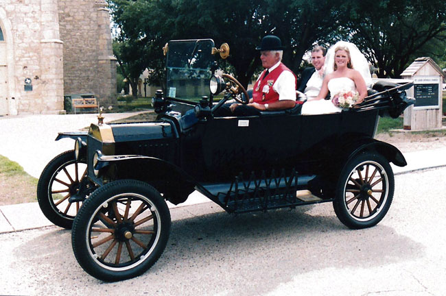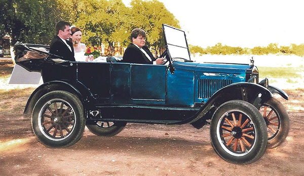 Daniel Bratcher's 1926 Ford Model T touring car ina wedding not long after resoration