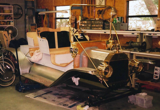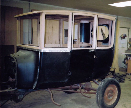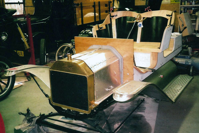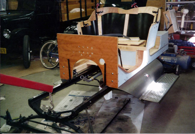 >Body work for Tom Campbell's 1911 Model T roadster project being installed