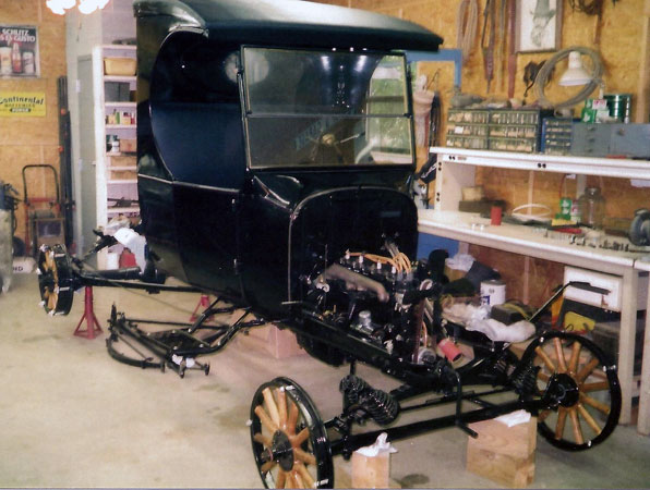 The beginning of final assembly on Marshall Huling's 1911 Ford Model T Torpedo speedster project