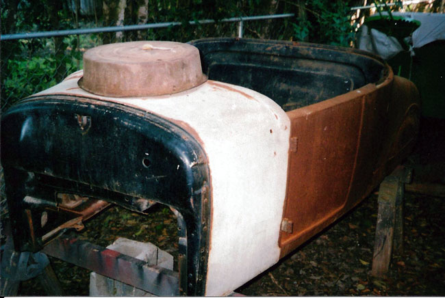 George Wilson's 1921 Ford Model T Center Door as it arrived at Julius Neuhoffer's shop in Kerrville looking not all that bad.