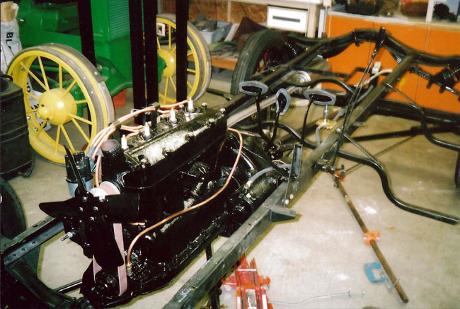 The replacement engine for George Wilson's 1921 Ford Model T Center Door during restoration