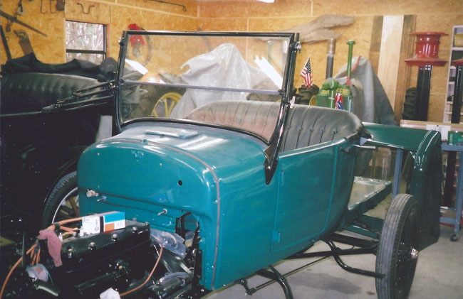 Body painted and seat installed on Tom Campbell's 1926 Model T roadster