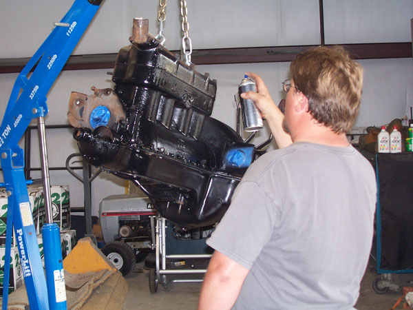 Clint Bitterly painting the repaired engine on the 1923 Ford Model T runabout
