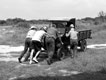 Pushing the 1924 Ford Model T C Cab 1 ton truck outside the display building for the first time in 25 years in September 2007
