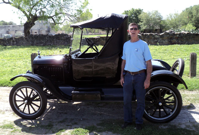 Richard Horvath and his 1921 Ford Model T runabout at Mission San Juan, March 2012