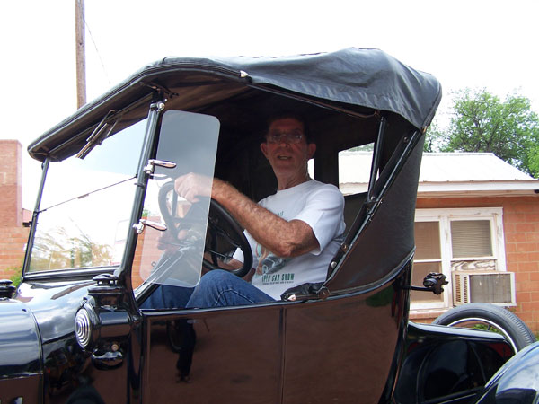 Richard Horvath and his 1923 Model T roadster at the March 2012 Mission tour