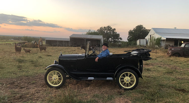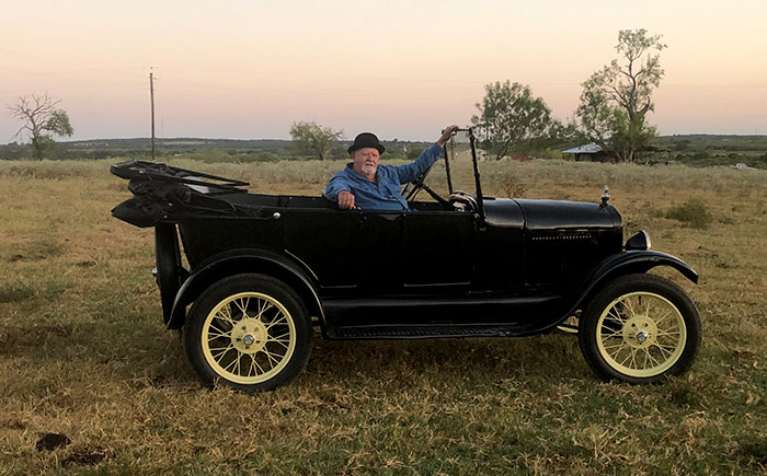 Roger and Elyse Ross in their 1926 Ford Model T during the Hill Country tour, February 2021