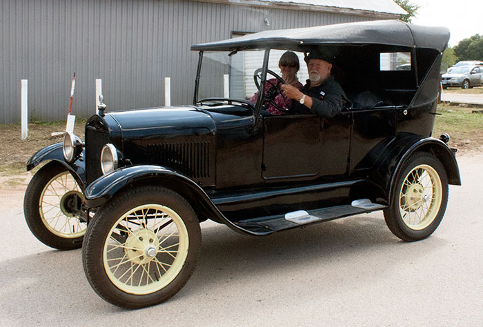 Roger and Elyse Ross in their 1926 Ford Model T touring car during the Texas T Party, October 2019