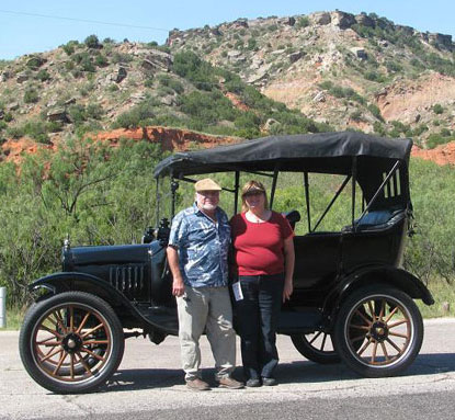 Ronnie and Laura Bitterly and their 1917 Model T touring car at the Texas T Party in Palo Duro Canyon