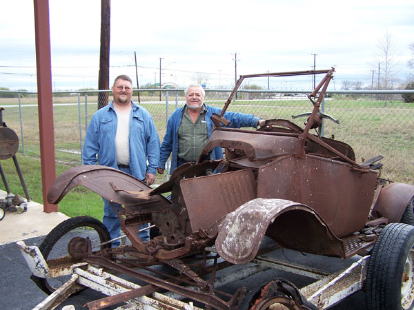 Ronnie and son Clint and their field fresh 1914 Model T runabout