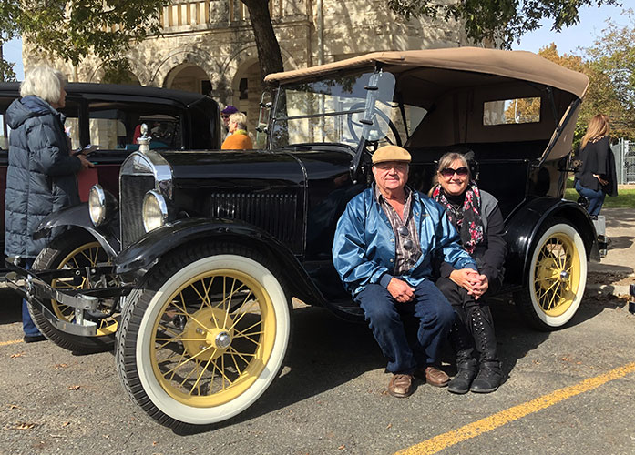 Ronnie and Laura Bitterly in their newly acquired 1926 Ford Model T touring car, Eleanor, during the 2017 Missions tour