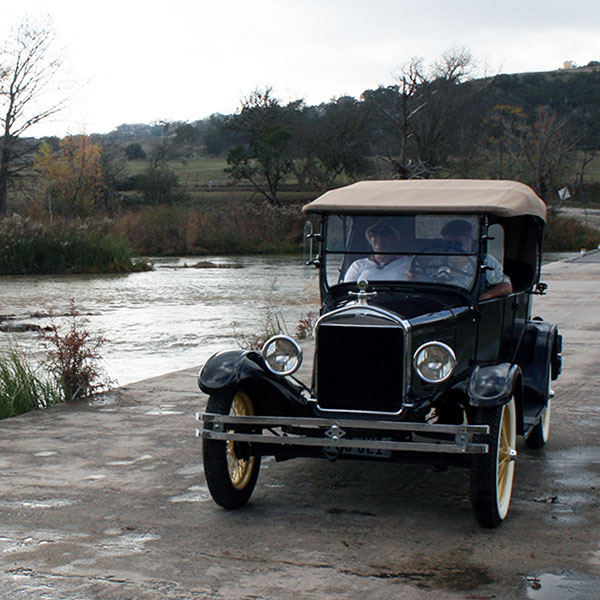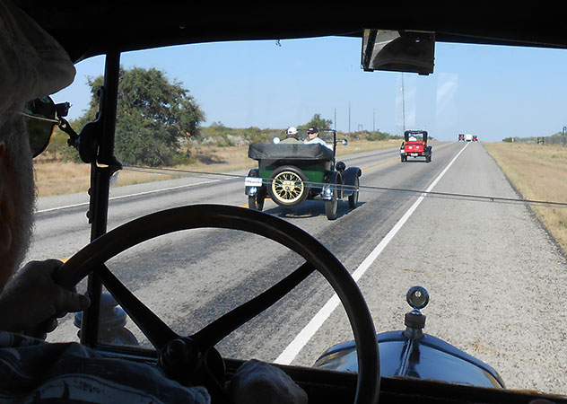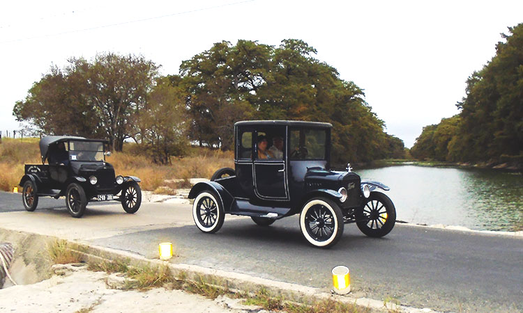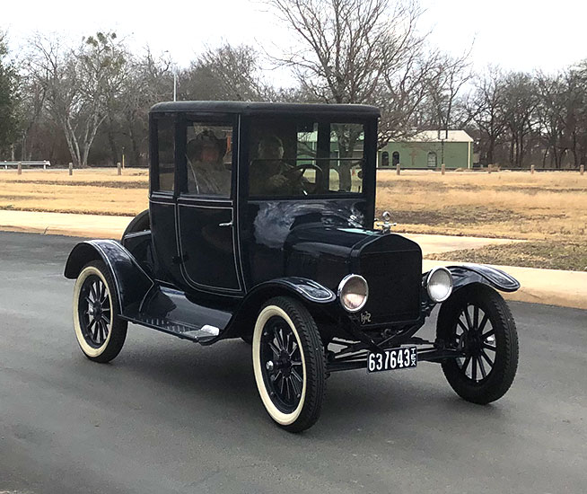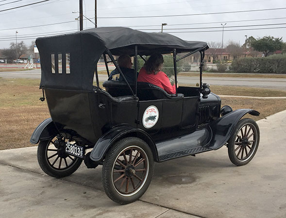 Ronnie and Laura Bitterly's 1922 Ford Model T tall coupe, "Doc", during the Hill Country tour, February 2021