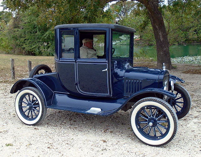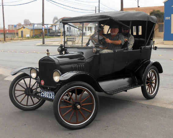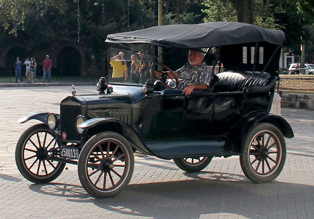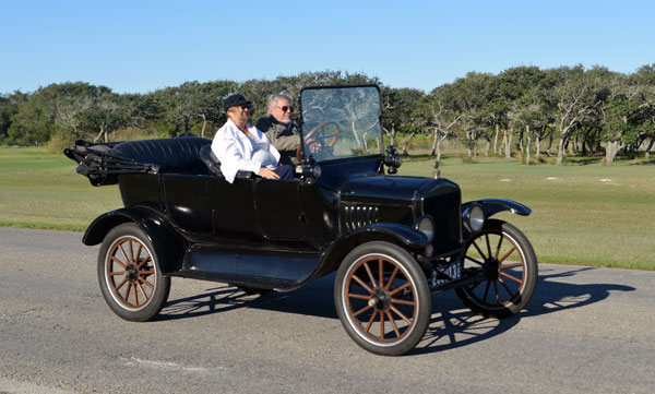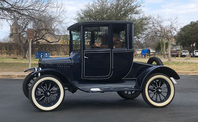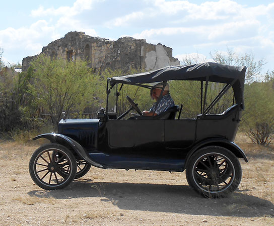 Ronnie Bitterly in his 1917 Model T touring car at the Alamo